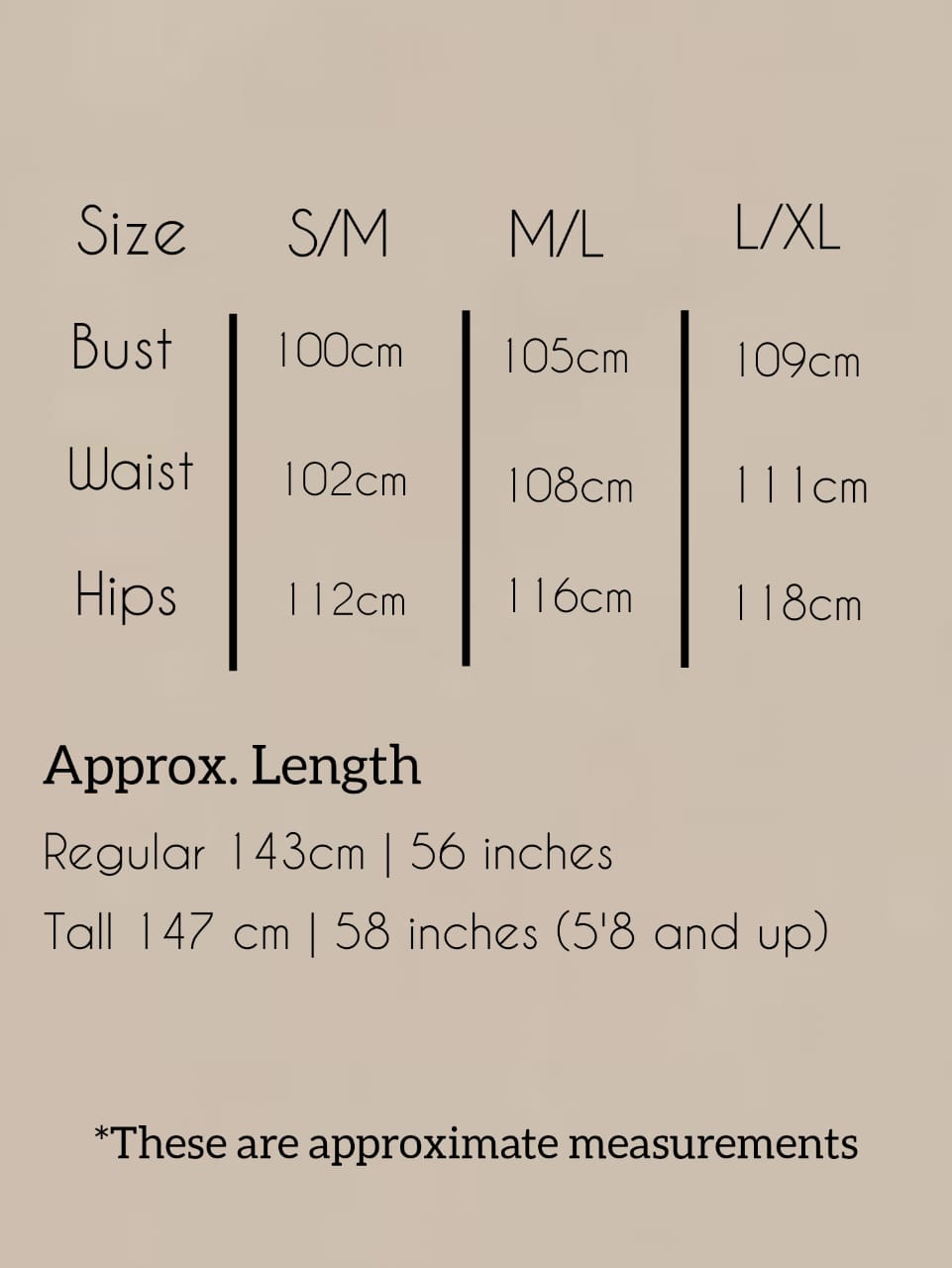 Model is wearing size S/M, 57 Length